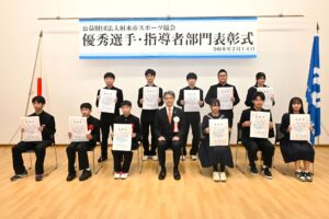 本協会では、毎年各種競技大会において優秀な成績を収めた個人・団体を表彰しており、令和8年2月14日(土)に令和7年度公益財団法人射水市スポーツ協会優秀選手・指導者部門表彰式を救急薬品市民交流プラザで開催しました。